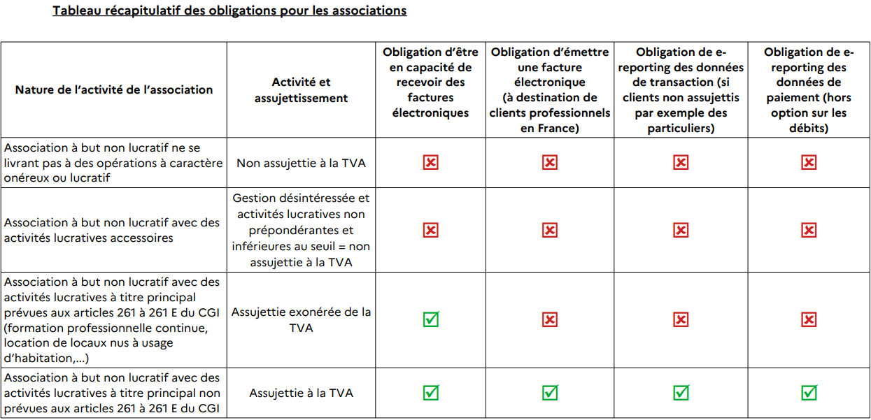 S’agissant des associations, l’obligation et le calendrier varient en fonction de l’assujettissement des structures à la TVA :